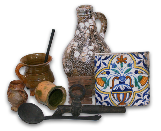Tijdens een van de vele restauraties op de Kerkbuurt werden onder een vloer veel mooie blauwwitte tegels uit ca. 1650 gevonden met afbeeldingen van kinderspelen – deze zijn alle gered en gedocumenteerd. Deze vondst duidt toch op enige welvaart, waar de meeste andere voorwerpen wijzen op een sobere levensstijl.